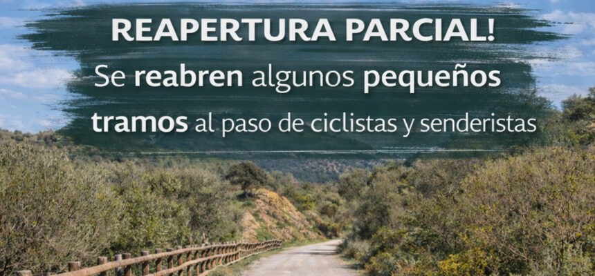 Informamos de que, tras haber permanecido cerrada al tránsito debido a los enormes daños causados por el tren de borrascas de enero y febrero, a partir del sábado 28 de marzo de 2026 solo se reabren algunos pequeños tramos de la Vía Verde de la Sierra para el paso de senderistas y ciclistas. Es muy importante recordar que no se encuentra reabierto el recorrido completo, por lo que rogamos a todas las personas usuarias que respeten en todo momento la señalización, las indicaciones publicadas y las normas de uso. Los tramos abiertos podrán recorrerse únicamente en sentido ida y vuelta, debiendo regresar por […]